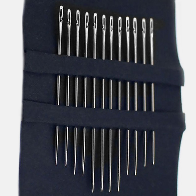 Putting the top of the listle beside the needle, and then threading the lisle through the needle by using the threader 2-3 centimeter.