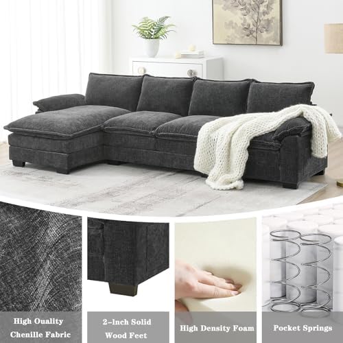 118 "Modern L-Shaped Sectional Sofa, Comfortable Sleeper Sofa, Minimalist Recliner Sofa, 6-Seater Chenille Sectional Sofa, Living Room, Office Apartment (Gray)