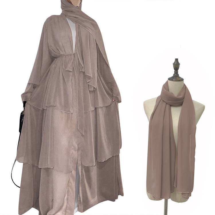 2 Pieces Set Hijab Muslim Dress Women Chiffon Big Swing Turkish Long Dresses Caftan Marocain Hijab Abaya Dubai Suit Female Robe
