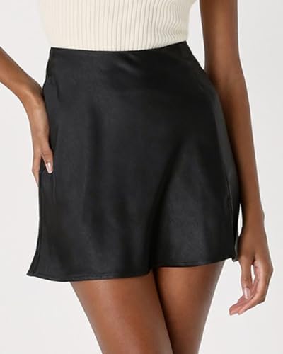 2025 Summer Mini Skirt Satin High Waisted Slit Front Silk Casual A-Line Party Short Skirts for Women
