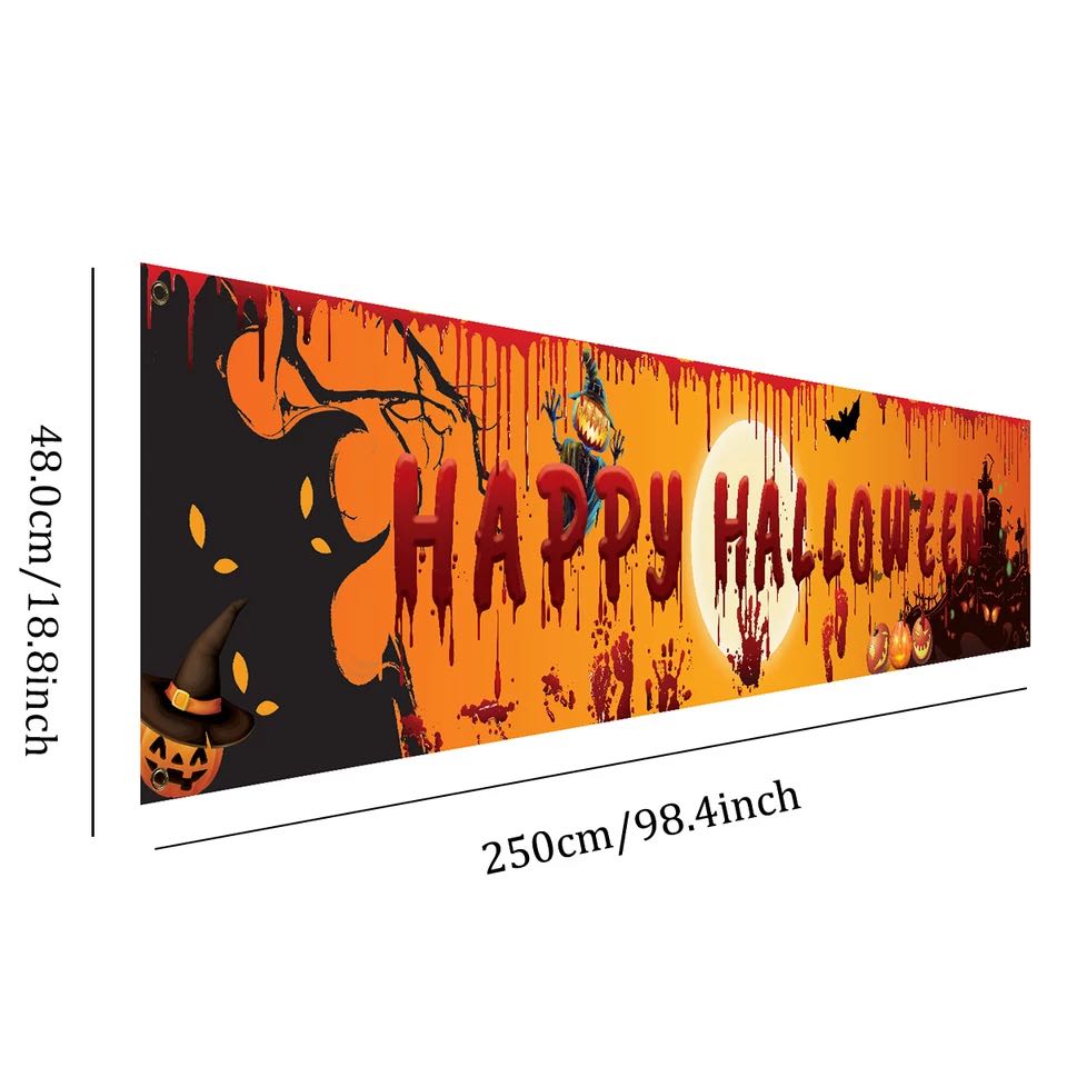 250cmx48cm Horror Happy Halloween Bloody Bat Pumpkin Ghost Print Party Backdrop Halloween Hanging Banner Home Garden Decoration