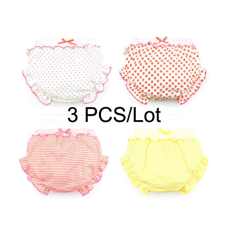 3 Piece/Lot Kids 100%Cotton Panties Girl Baby Infant Newborn Fashion Solid Cute Bow Striped Dots Underpants For Children Gift CN