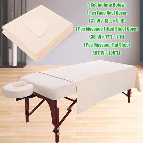 These are nicer than I thought they would be. I was nervous they would be more stiff and coarse but they are pretty soft. They fit my table which has a layer of egg carton foam, thick table warmer and water-proof cover. The elastic is not super tight but it stays on well for me. The color beige is more yellow than the photos- like a butter beige color. The head rest covers also fit over a large head rest with plenty of room- kind of loose. No complaints- wish they were a little softer but still good for the money.