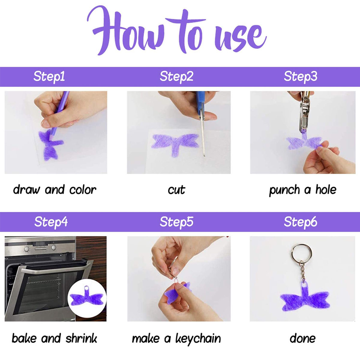 3. These shrink films are suitable for DIY pendants, earrings, keychains, jewelry, buttons, gift tags, zipper pulls, bookmarks and ornaments, endless fun of making shrink.