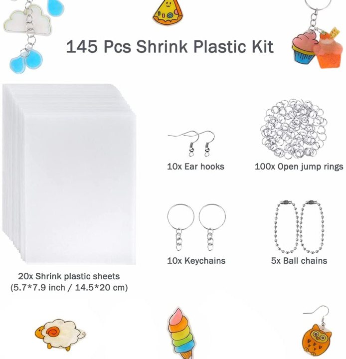 33/145/198 Pcs Shrink Plastic Sheet Shrinky Art Film Paper Heat Blank Keychain Earring DIY Kit Drawing Art Supplies for Kids