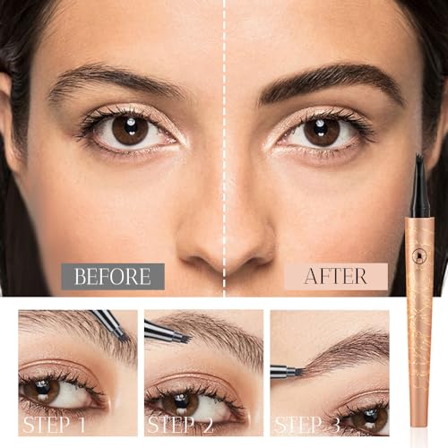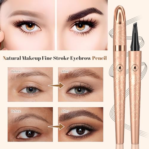 3D Microblading Eyebrow Pencil 4 Fork Tip, 2PCS Magic Eyebrow Pencil Precise Brow Pen Microblading Eyebrow Pencil, Waterproof Eye Brown Makeup Long-Lasting Eyebrow Pencil Stay on All Day (Dark Brown)