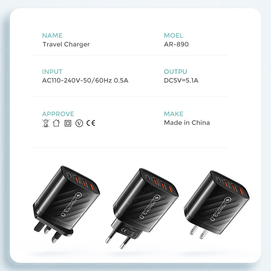 48W USB Charger 4 Port Type C Quick Charge QC 3.0 For Samsung Xiaomi mi10 Huawei Charger adapter For Smartphones PD Fast Charging