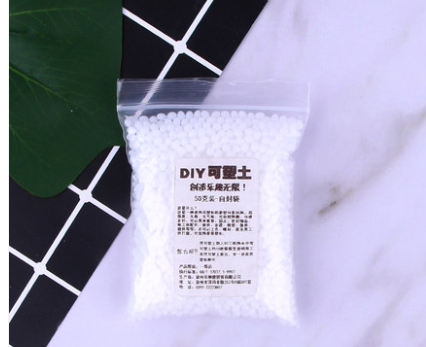 Due to the rapid changes in the thermal plastic properties of the heating deformation, the white solid particles are transformed into a transparent soft clay.