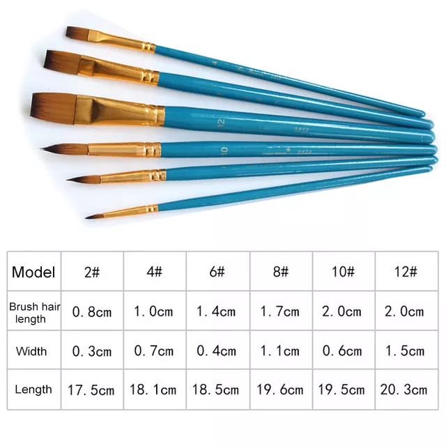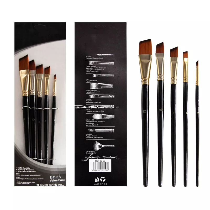 This acrylic artist paint brush set includes 5 different sizes which will meet most of your creative painting needs, from thick strokes to fine detailing.