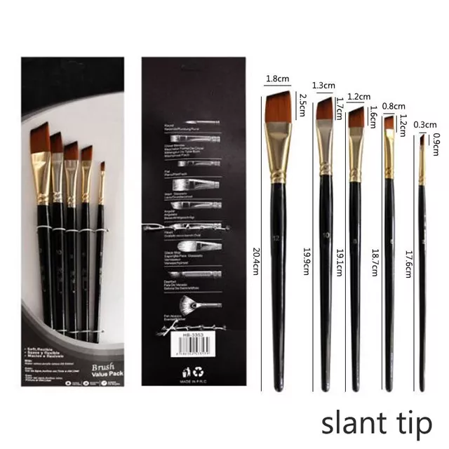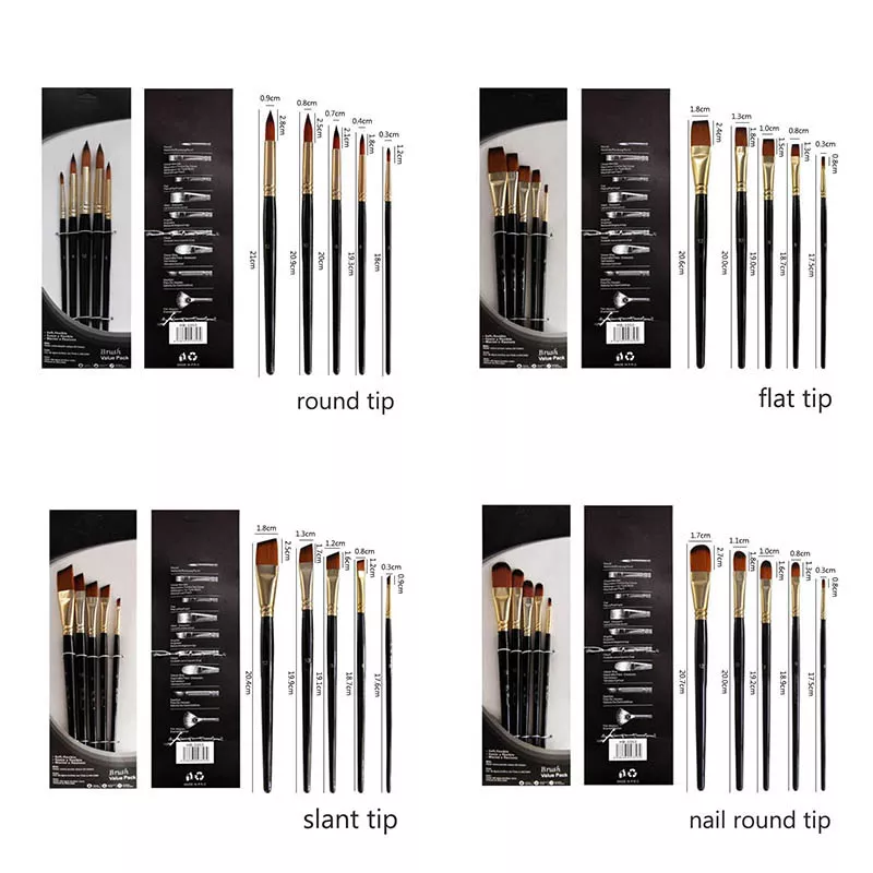 We have four different pen tips design, Slant tip and Round tip,Flat tip,Nail round tip, for different using purposes in painting.