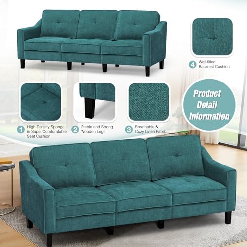 This is exactly what I was looking for! The fabric is beautiful and good quality and the cushions are just the right firmness for a good visit or a lounge. Height is perfect too. We love the tailored look and the teal color is perfect in our space.
