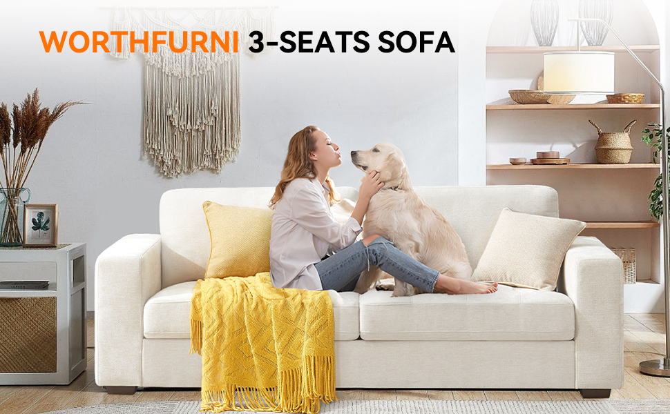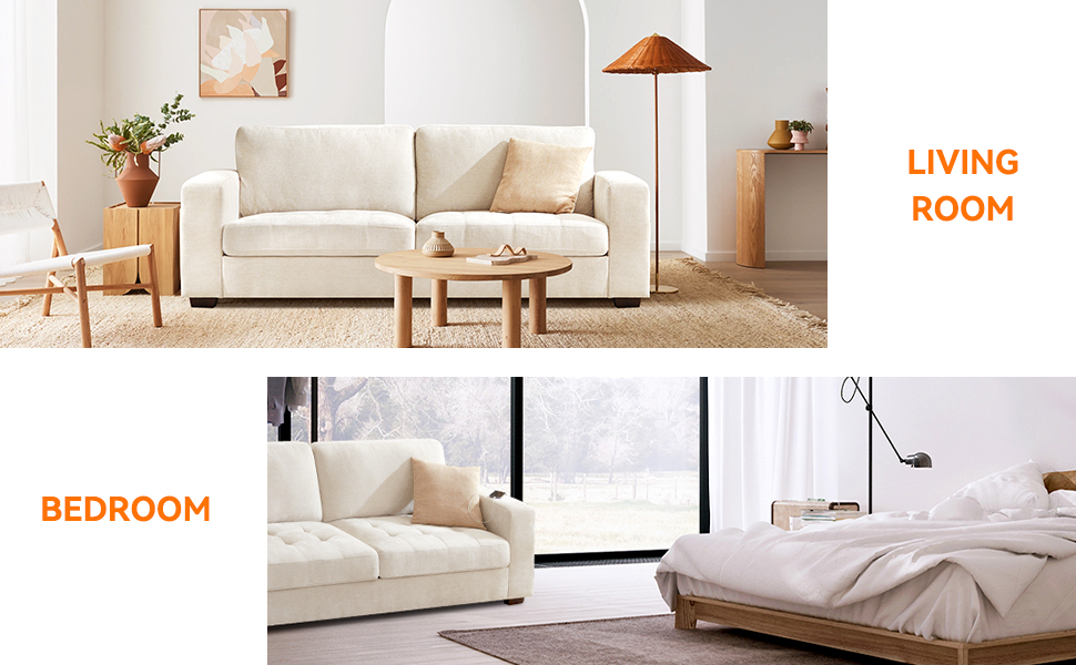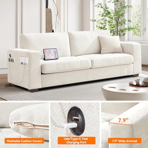 This modern 3-seater couch not only looks stylish but also offers incredible comfort. The large chenille fabric in beige is warm and soft, making it so inviting that I never want to get up once I sit down. The removable covers on the back and seat cushions make cleaning and maintenance a breeze, ensuring the sofa stays looking fresh and new. The built-in USB ports are a thoughtful feature, allowing me to keep my phone and tablet charged without ever leaving the comfort of my seat.This sofa is perfect for my living room. Whether I'm watching a movie with family, having a small gathering with friends, or just reading a good book by myself, it provides an exceptionally comfortable space. Its oversized design works well as a three-seater or as an extra-large loveseat, perfect for cozying up with someone special. The sofa’s design details and high-quality materials make it not only a functional piece of furniture but also an integral part of my home decor, adding warmth and elegance to my living space.