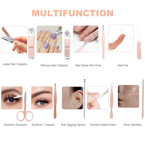 9 PCS Nail Clippers, ONEHERE Premium Manicure Set, Professional Grooming Gift Kit, Pedicure Kit, Facial, Hand, Foot, Cuticle Nail Care Tools, Fingernail Clippers with Luxurious Portable Travel Case