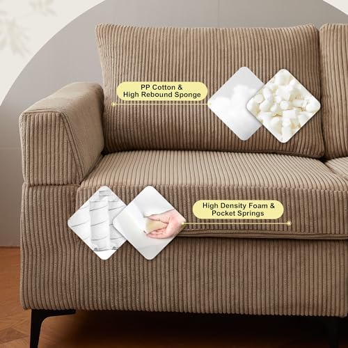 96" Corduroy Sectional Sofa Couches for Living Room,Camel L Shaped Sofa Couch with Reversible Chaise,Comfy 3 Seat Reversible Sofa for Bedroom Office Apartment Convertible Couch (Camel)