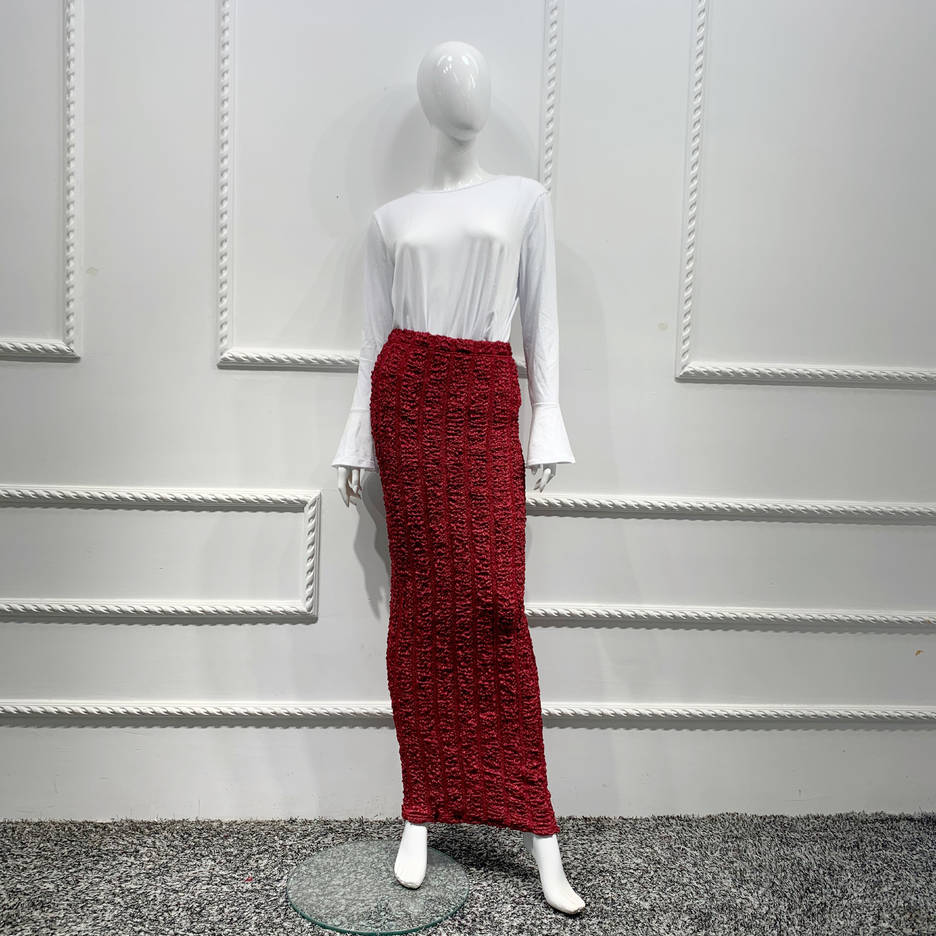 Abaya Muslim Skirt Women Pleated Skirt Stretch Maxi Pencil Middle East Bodycon High Waist Sheath Long Skirt Islamic Slim Skirts