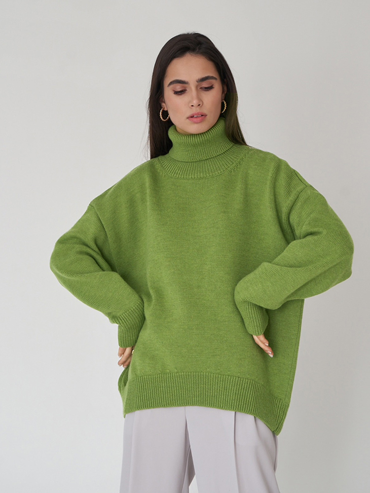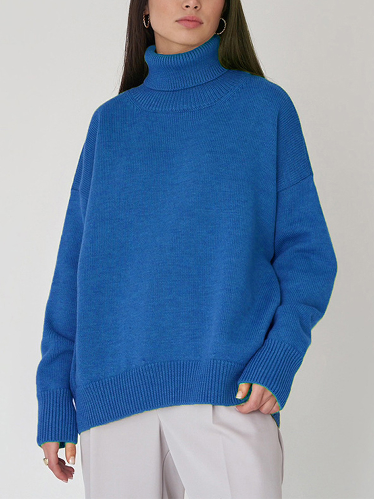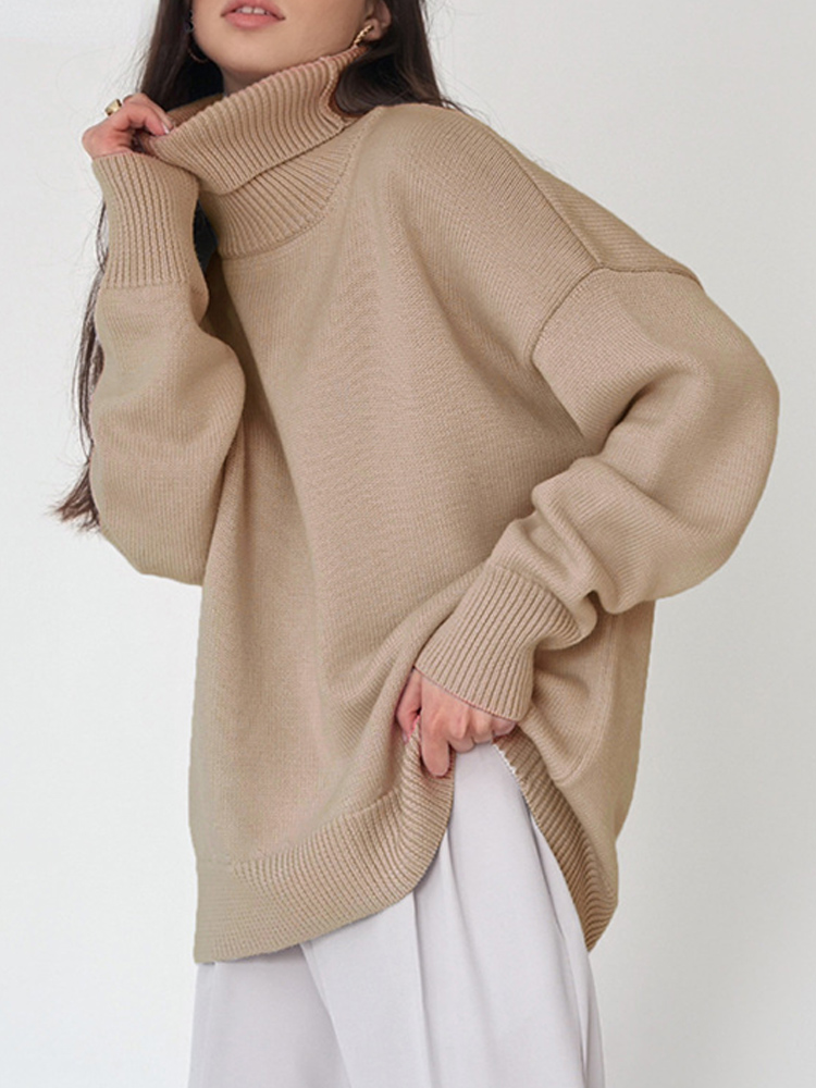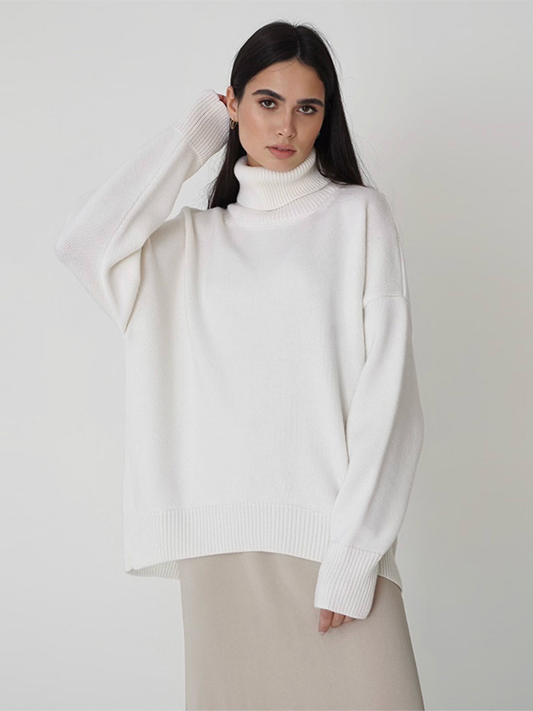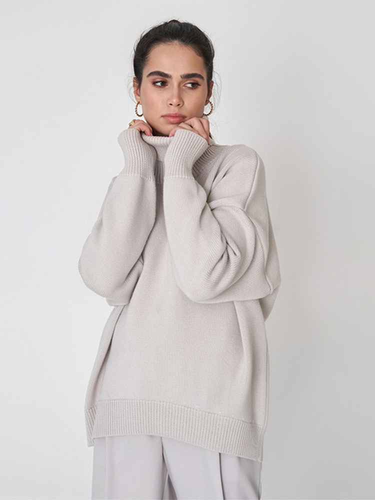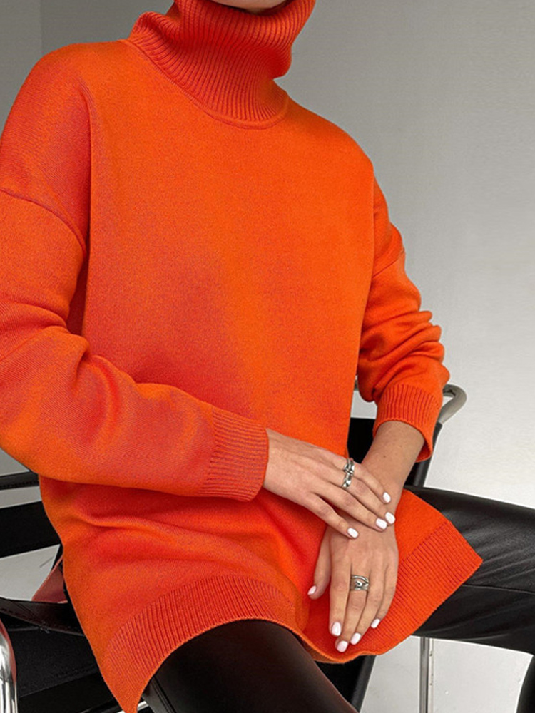 Autumn Women's Loose Turtleneck Sweater Solid Long Sleeve Split Knit Sweaters Female Casual Simple Lady Clothes