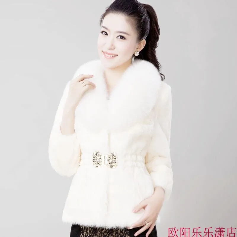 Autumn&Winter Ladies Temperament Butterfly Button Short White Faux Fur Coat Waist Slimming Jacket Feminina Top