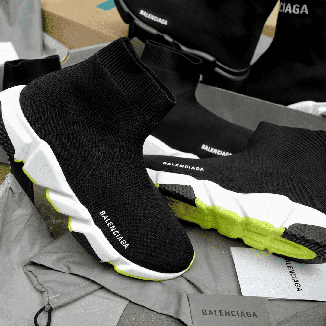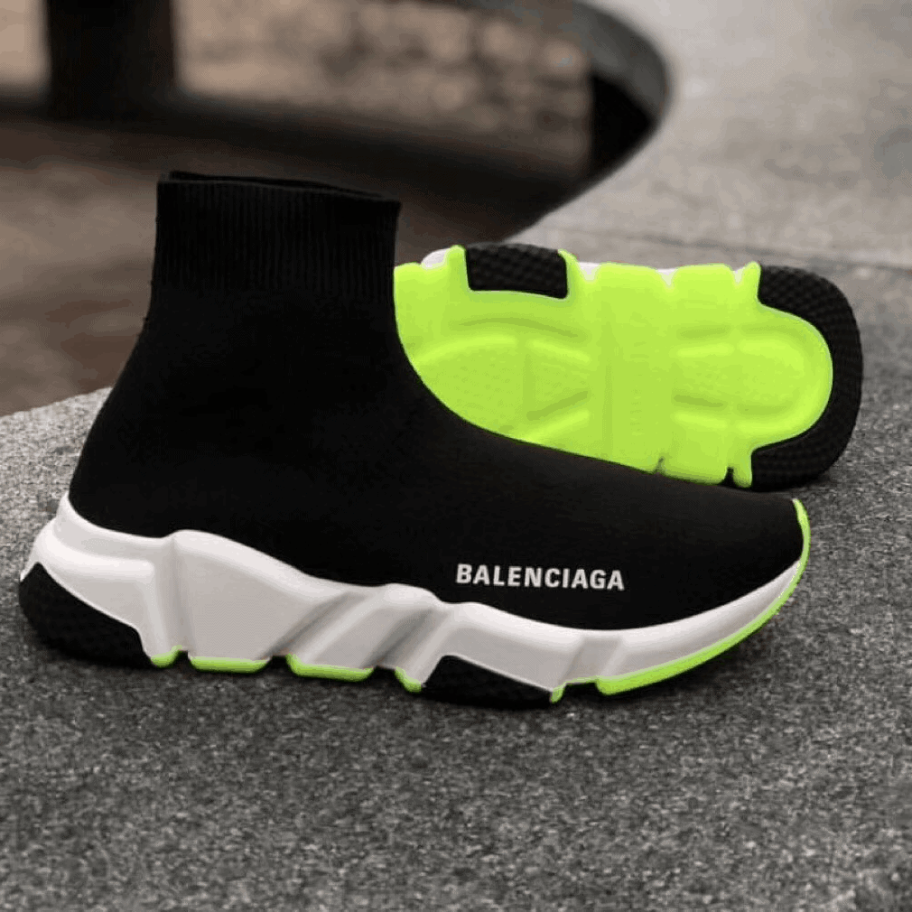 BALENCIAGA SPEED TRAINER BLACK WHITE NEON SS19 – BB12