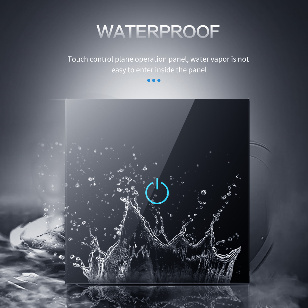 BONDA Wall Touch Switch 220V EU Standard Tempered Crystal Glass Panel Power 1/2/3 Gang 1 Way Light Sensor Switches Waterproof