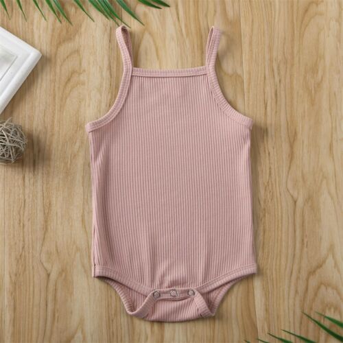 Baby Summer Clothing Newborn Baby Boy Girl Sling Bodysuit Jumpsuit Sleeveless Outfit Ribbed Solid Clothes Set