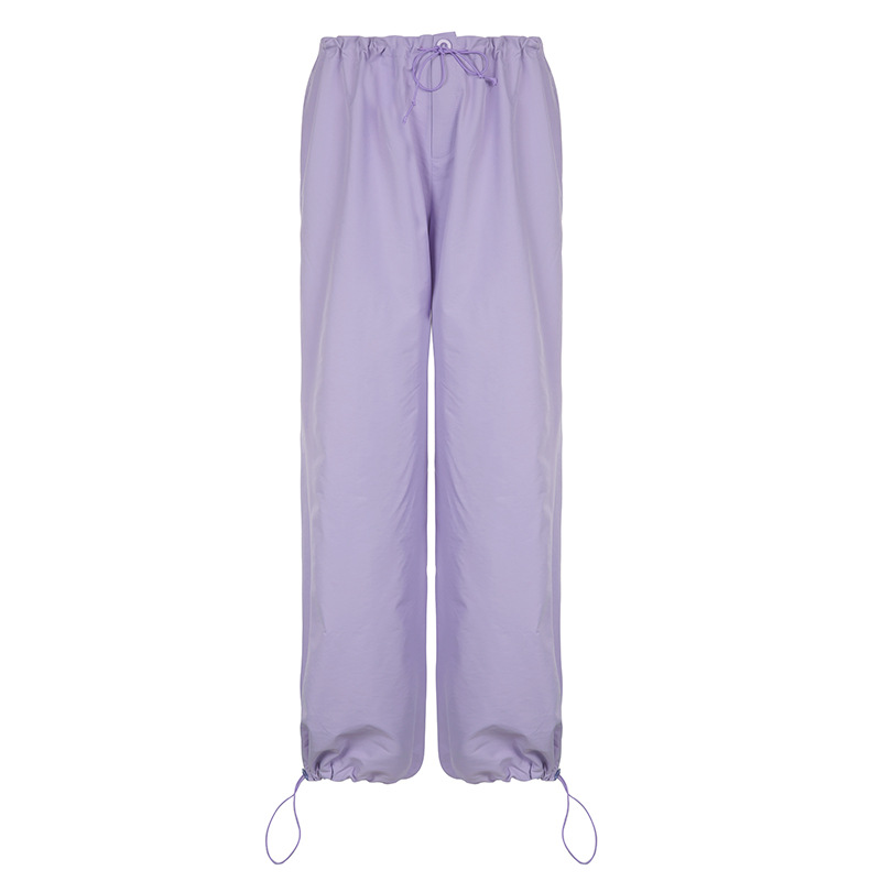 Baggy Cargo Parachute Pants Y2k Jogger Trousers Brown Wide Leg Retro Old School Hip Hop Adjustable Button For Ladies Women Fall