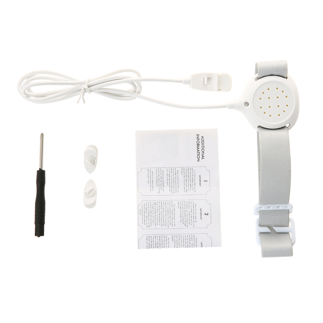 This is a very user-friendly design product with a bedwetting reminder function for infants and young children. When the bedwetting occurs, a sound and vibration signal are emitted, so as to remind adults to know and take measures that are beneficial to the baby's health in time. The reminder device has high humidity sensitivity, and the response is fast and sensitive. The product is compact and easy to wear, just clamp the control head in a position where it can be detected. With it, adults can easily find out the dryness and wetness of baby's diapers