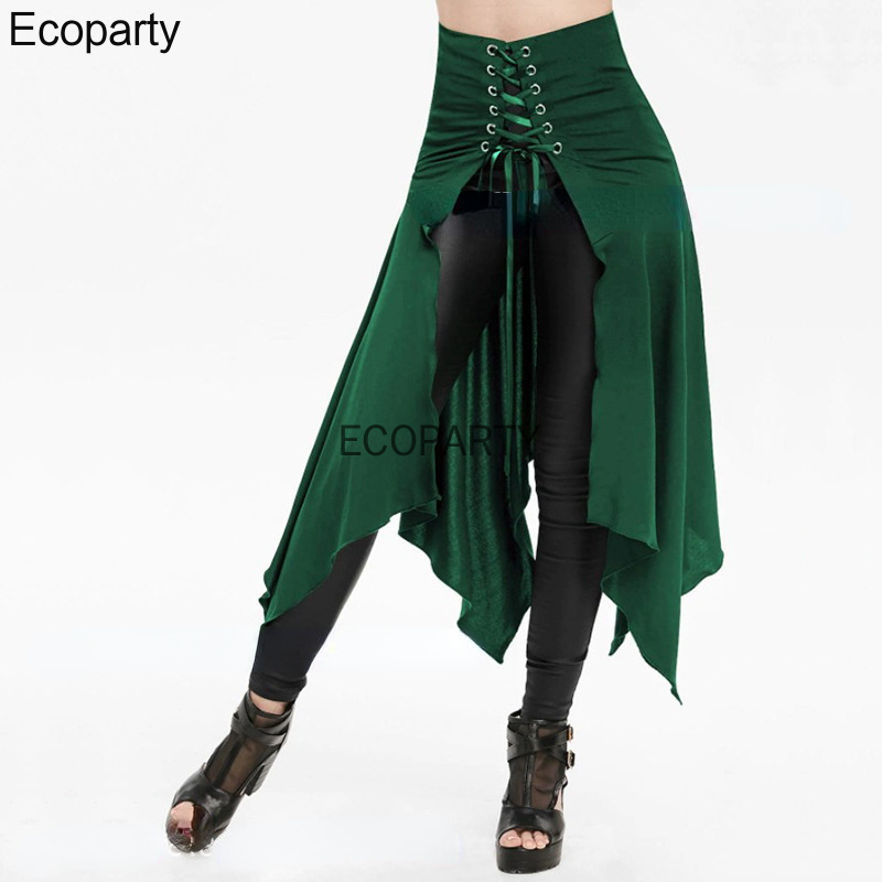 New Black Medieval Vintage Gothic Skirt High Waist Lacing Irregular Umbrella Skirt Halloween Steampunk Long Skirts For Women
