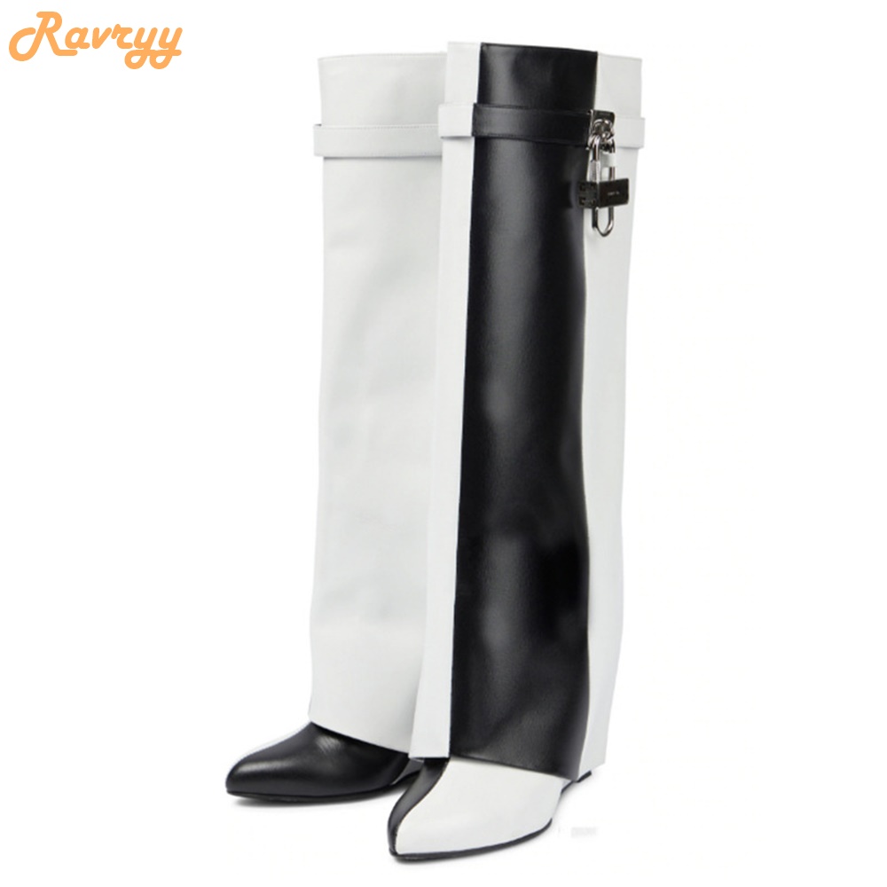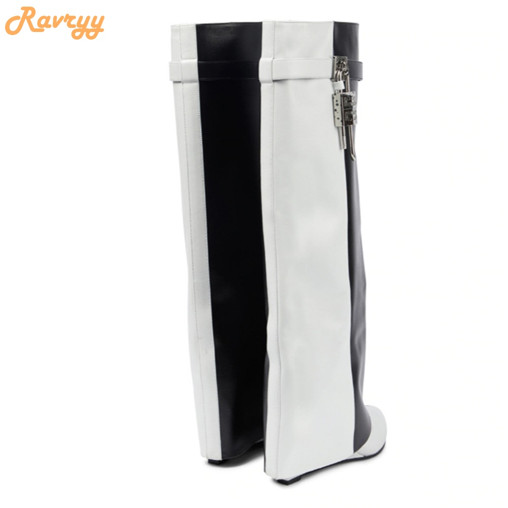 product : Black/white Splicing Cowhide Boots