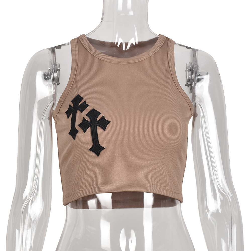 BoozRey Y2K Cross Print Crop Top Women Sleeveless O-Neck Basic Slim Vest Tee Cool Girls Streetwear Vintage Gothic Tanks