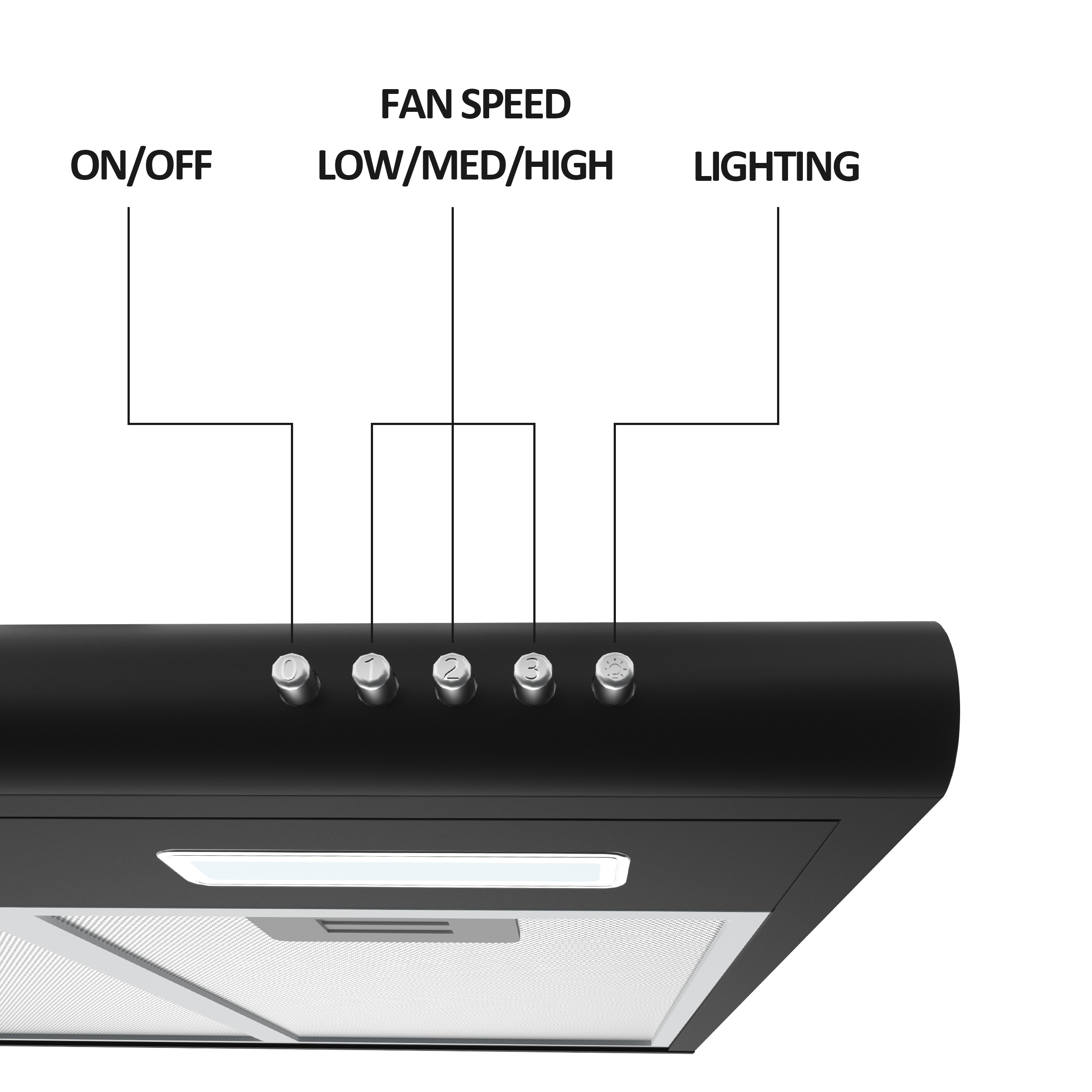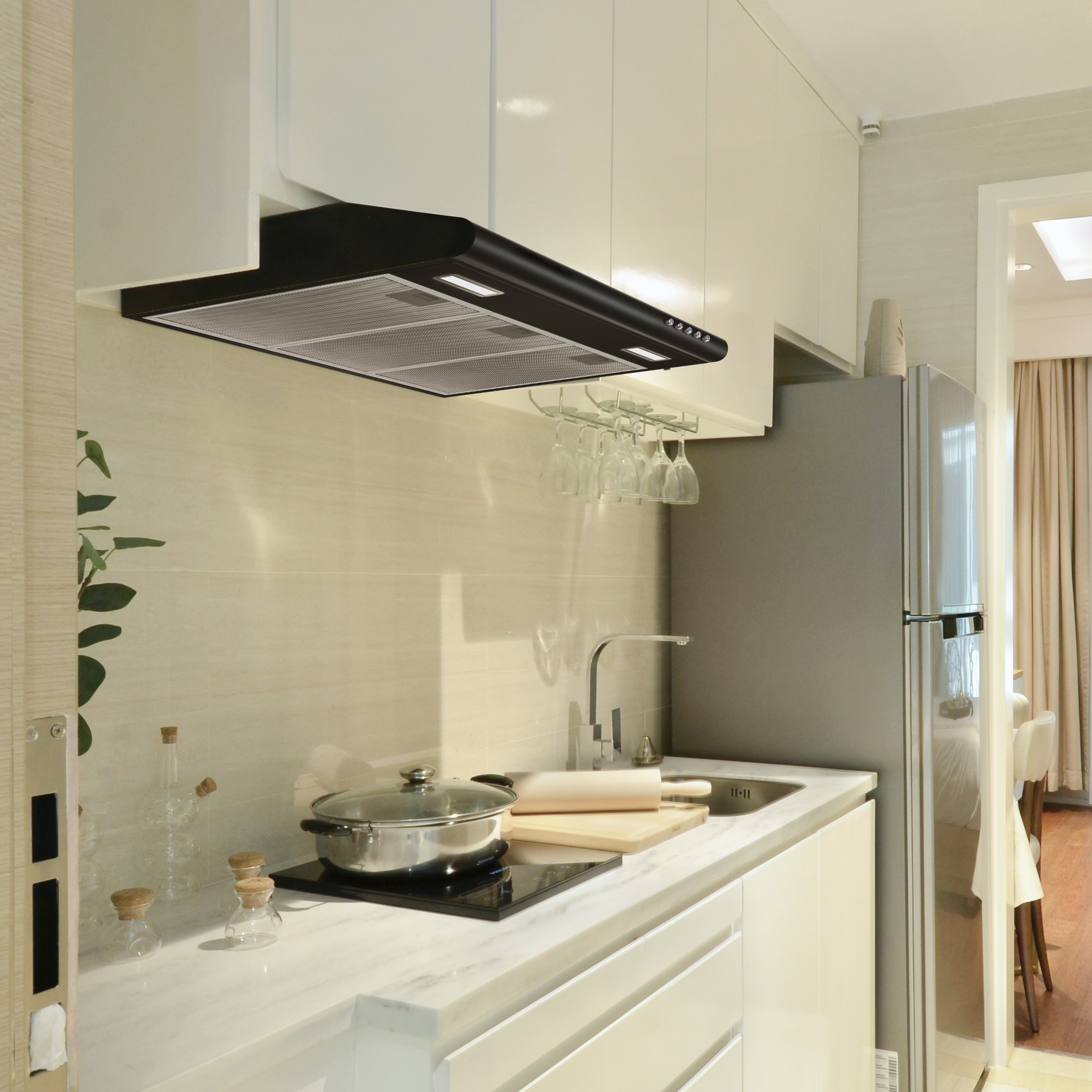 Energy-efficient led light designed to withstand high heat cooking environments, , brighten up your kitchen. 5-layer aluminum mesh filter perfectly trap the grease and oil. Easy to clean.