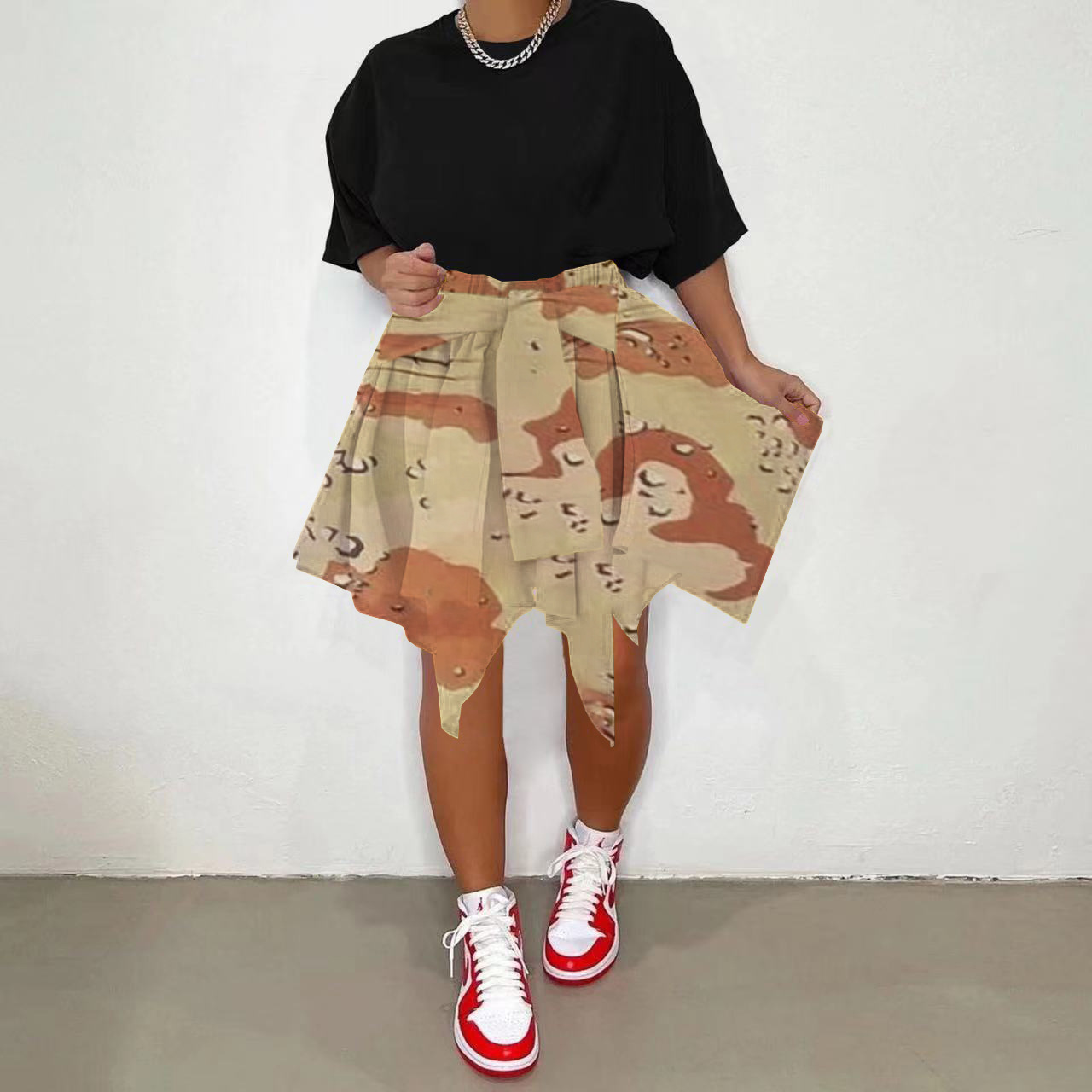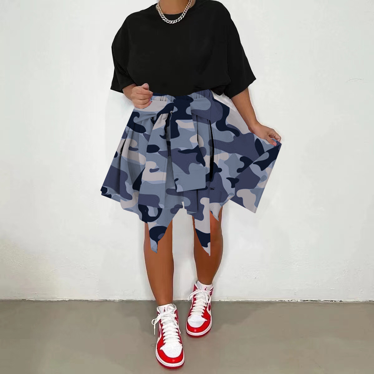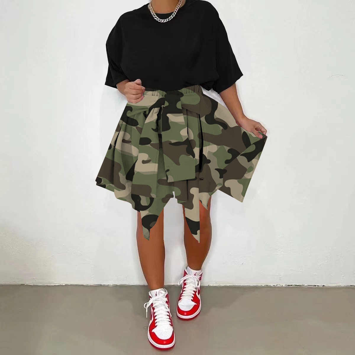 CM.YAYA Women Plaid Irregular High Waist Knee Length Skirts Summer Holiday Streetwear Sleeve Wrapped Lace Up Waist Skirt