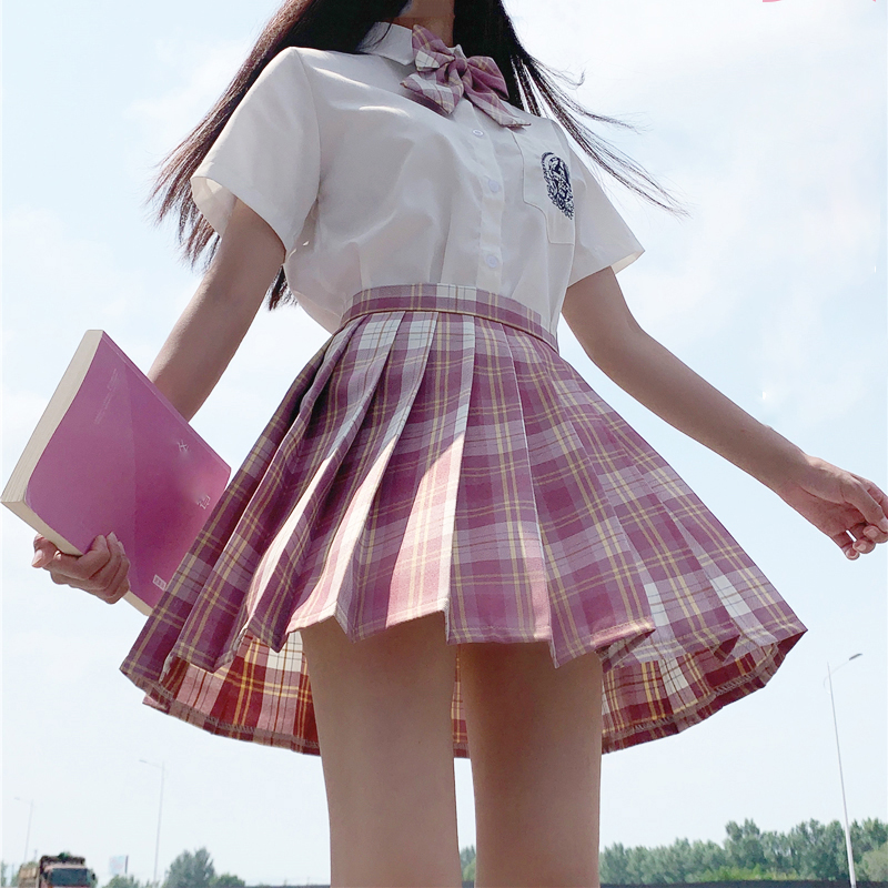 COZOK JK Uniform Skirt Genuine Plaid Skirt Summer Girl Children's Preppy Style Student Half Pleated Tartan Skirt Kawaii