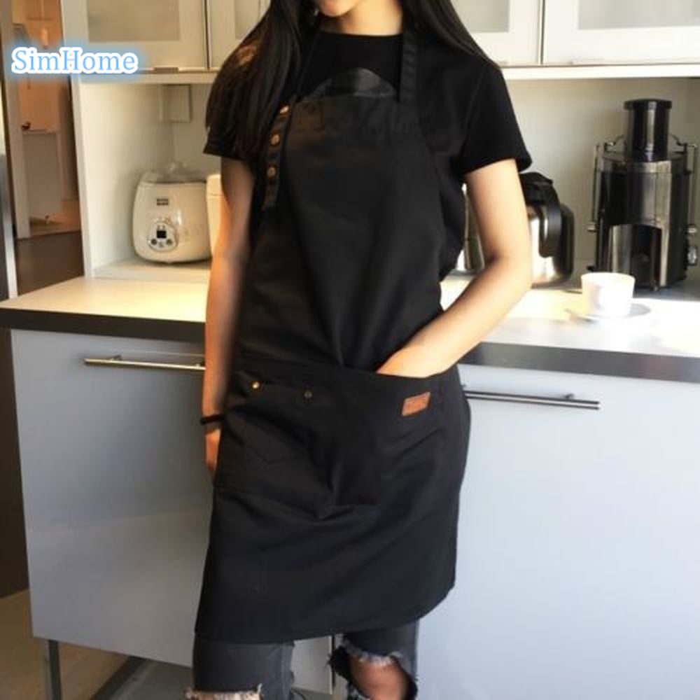Canvas Kitchen Aprons For Woman Men Chef Work Apron For Grill Restaurant Bar Shop Cafes Beauty Nails Studios Uniform
