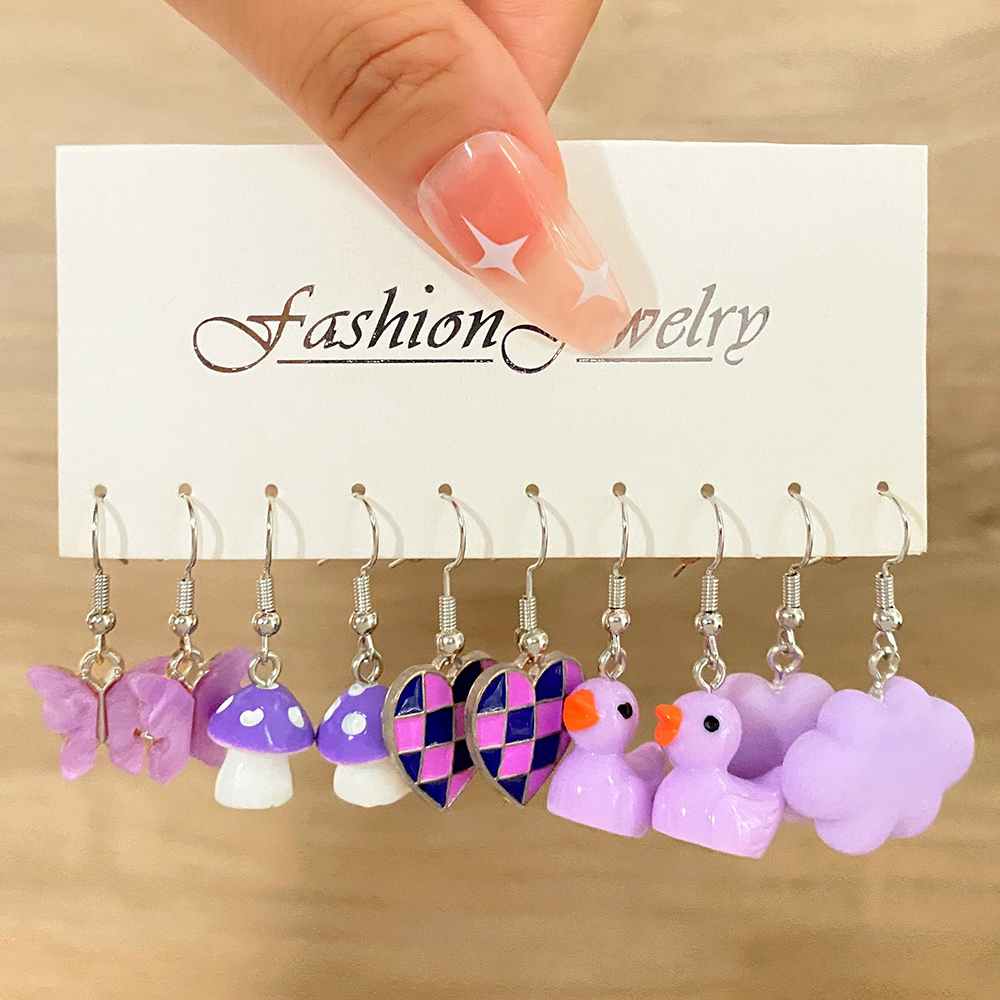 Cartoon Duck Earrings Set Animal Butterfly Heart Dangle Earrings for Women Geometric Bear Cloud Earring Trendy Jewelry