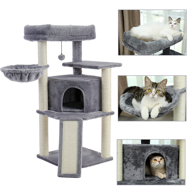ACTIVITY CENTER OF CATS - There are 1 perch on the top, 1 spacious perch on the second floor, 2 cat houses, 1 sisal ladder, 3 scratching posts, 1 toy ball and 1 rope... Offer cats lots of acticity options. The 4 floors design meets the jumping nature of the cat. They can jump, have a rest or play with friends in it.