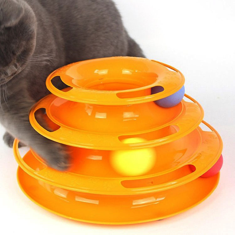 Cat Toy Tower Training Amusement Plate Kitten Tower Tracks Disc Cat Intelligence Amusement Triple Disc tumbler