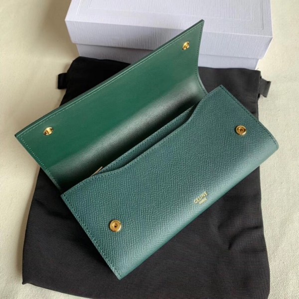 Celine Large Flap Wallet In Amazone Grained Calfskin