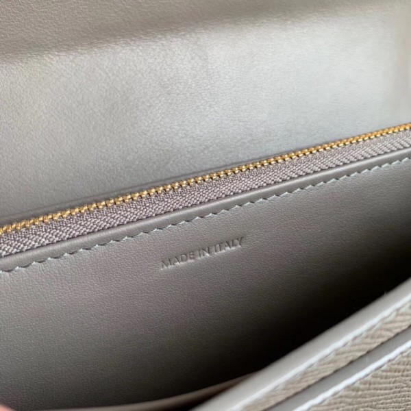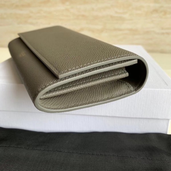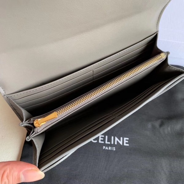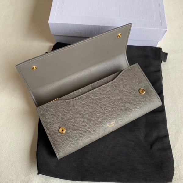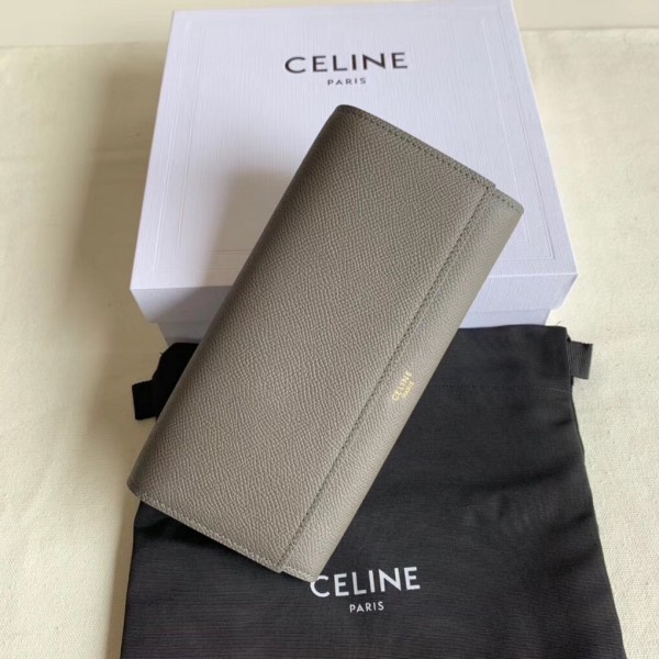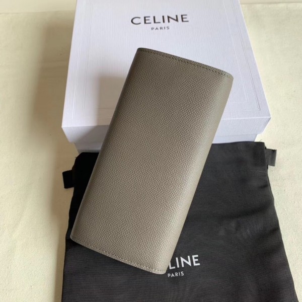 Celine Large Flap Wallet In Grey Grained Calfskin
