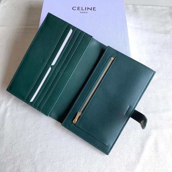 Celine Large Strap Wallet In Amazone Grained Calfskin