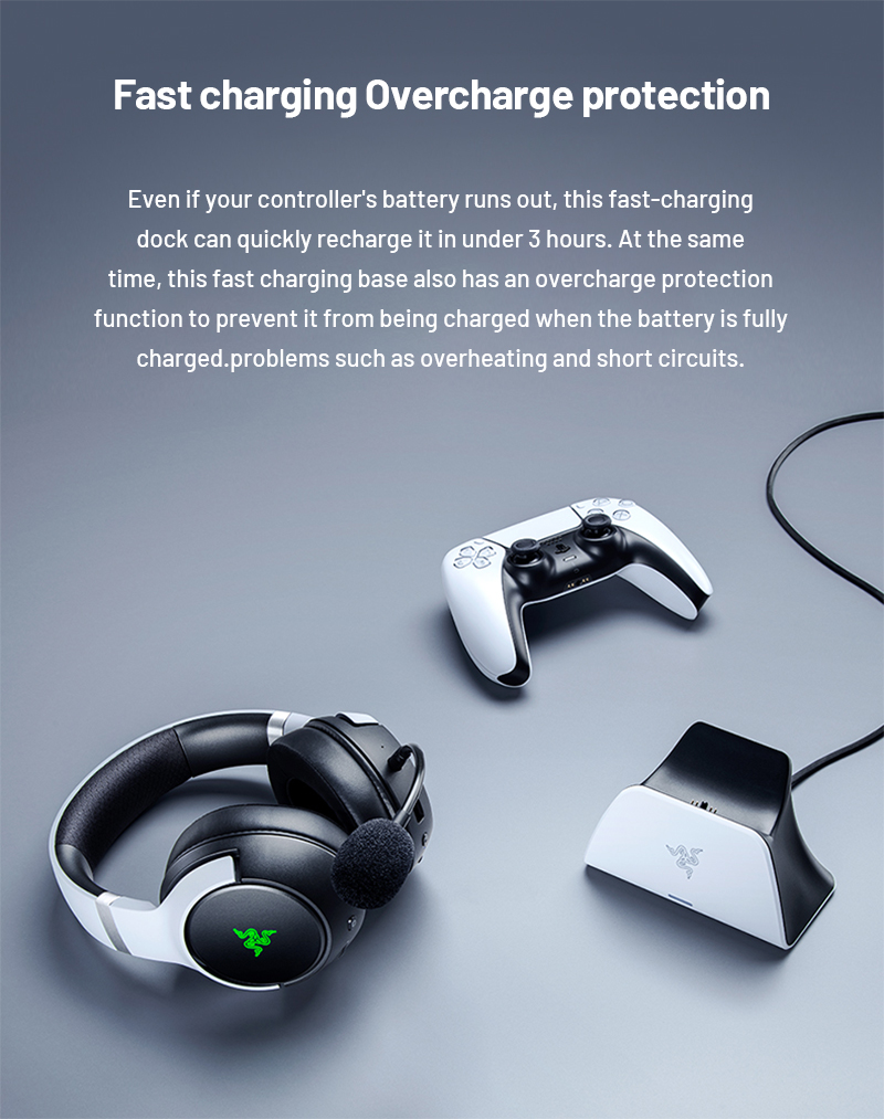 Even if your controller's battery runs out, this fast-charging dock can quickly recharge it in three hours. At the same time, the fast charging protection function can prevent problems such as overheating and short circuit that may occur after the battery is fully charged.
