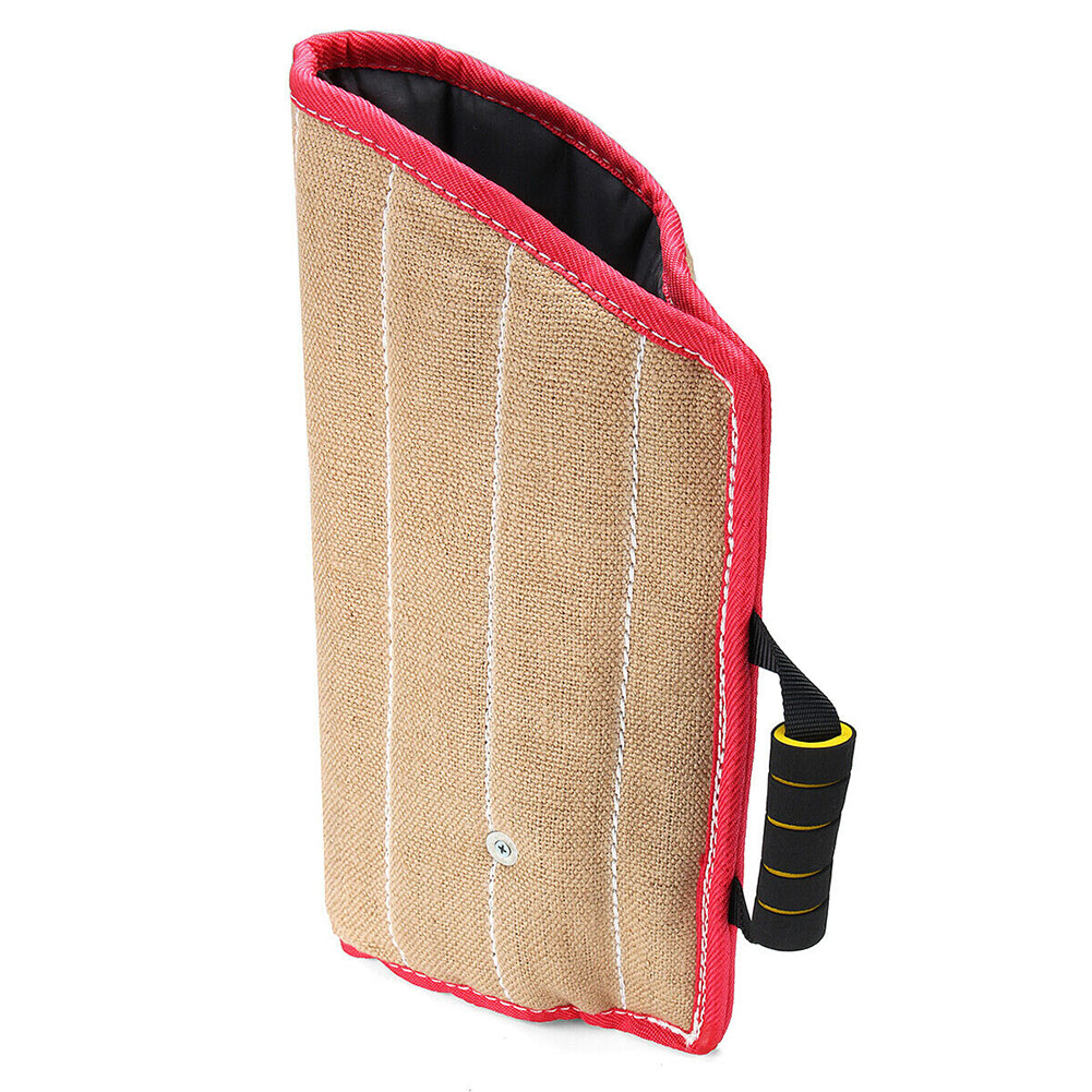 It is made of jute material, it will protect your arm from dog bite.