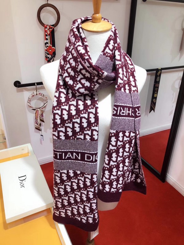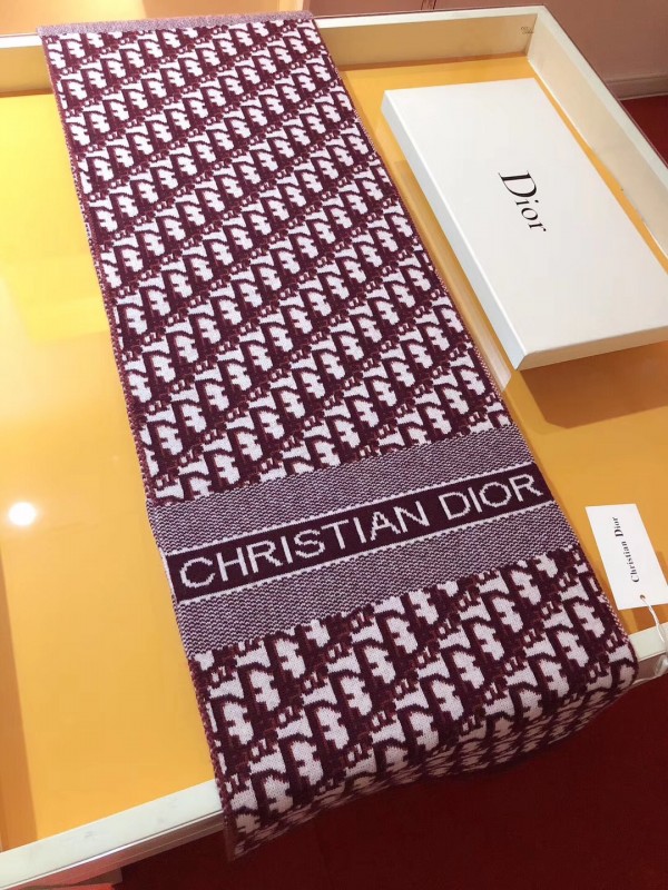 Dior CD Oblique Stole In Bordeaux Wool and Cashmere