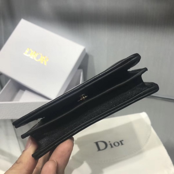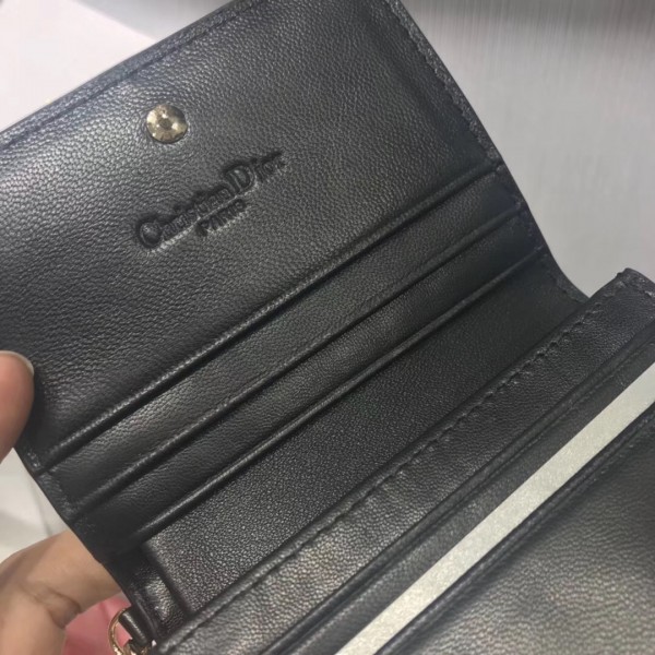 Dior Mini Lady Dior Wallet In Black Lambskin