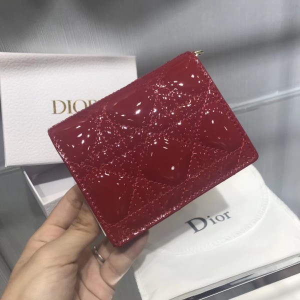 Dior Mini Lady Dior Wallet In Red Patent Leather
