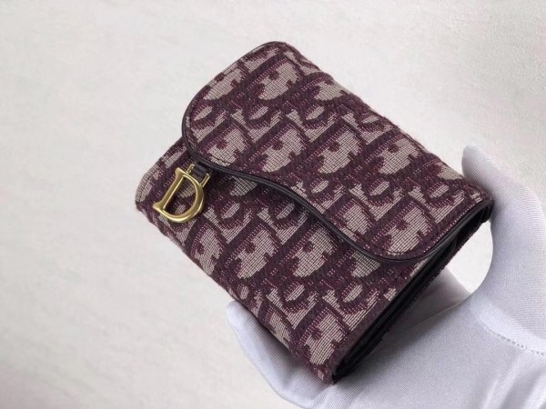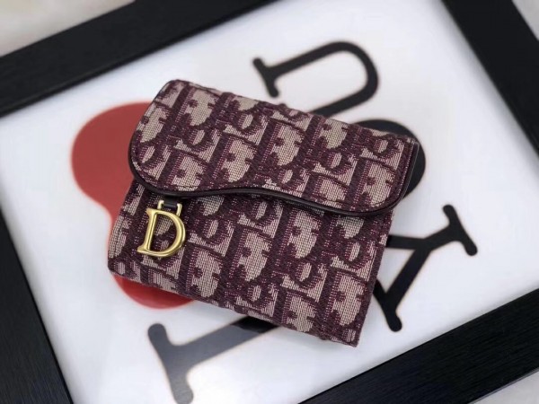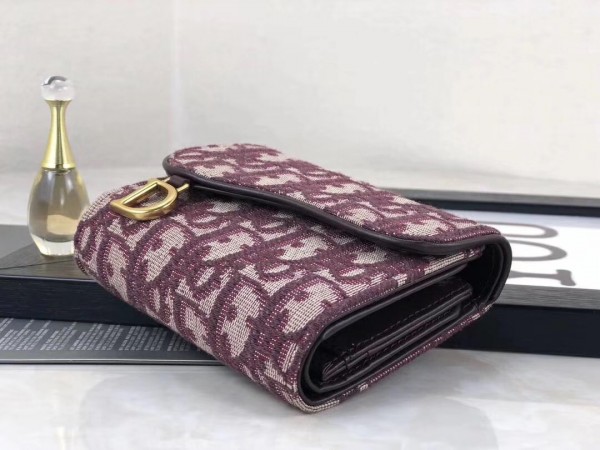 Dior Mini Saddle Tri-Fold Wallet In Bordeaux Oblique Canvas