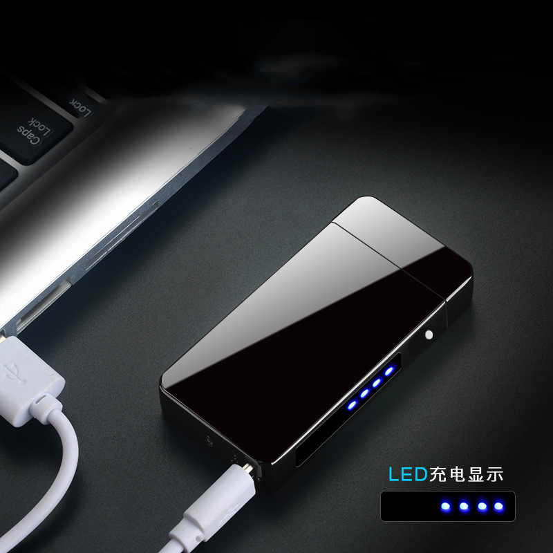 Dual arc windproof flameless lighter with LED power display USB touch