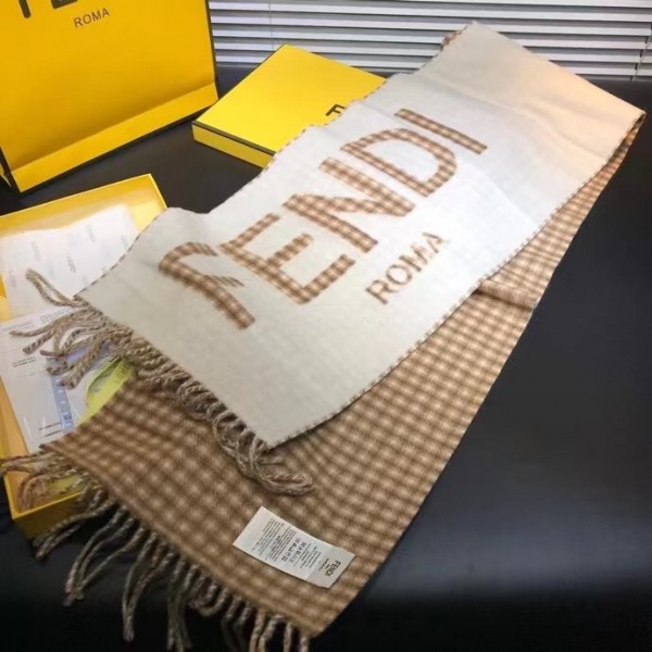 This timelessly elegant and luxurious Fendi scarf in soft wool and cashmere with Fendi Roma oversized lettering, lined with checked motif. Fringed hem, Its long, narrow shape enables it to be worn in many different ways.