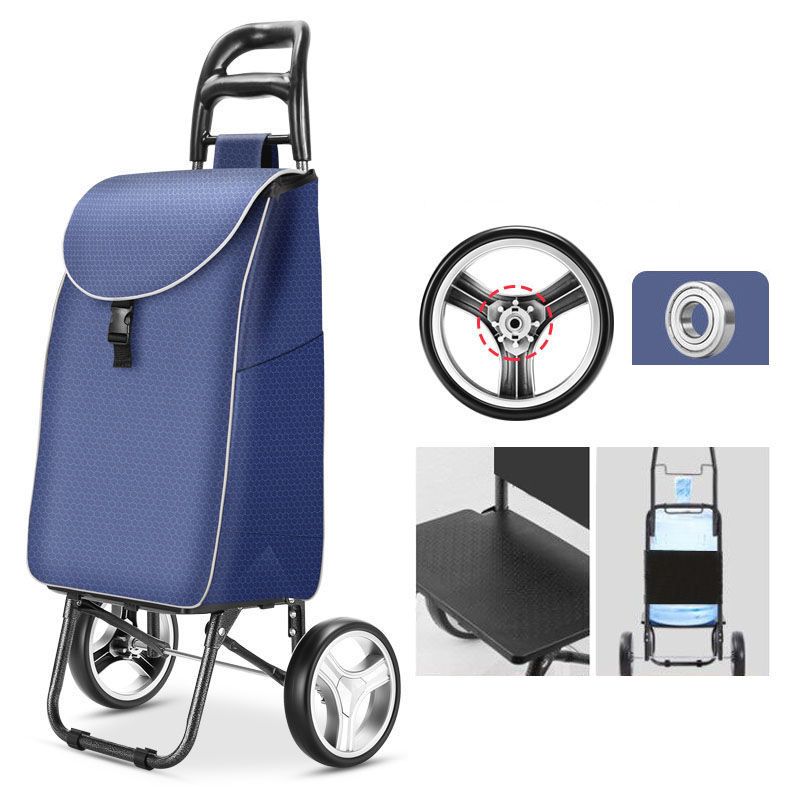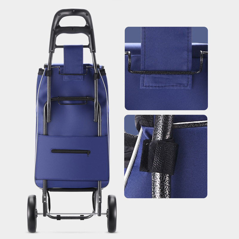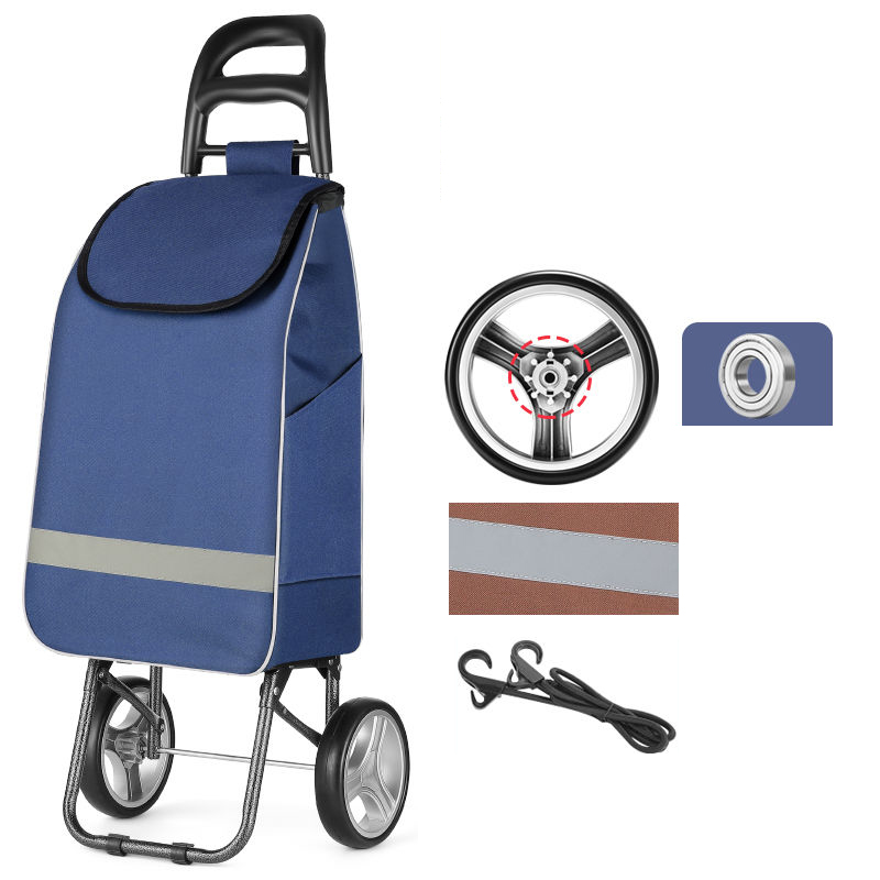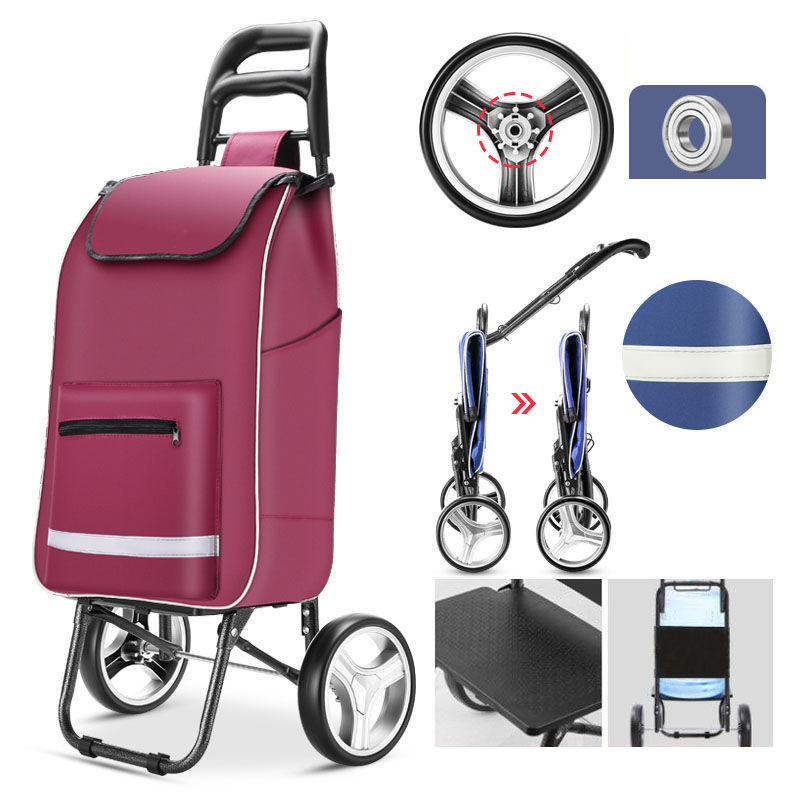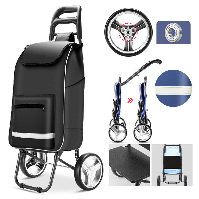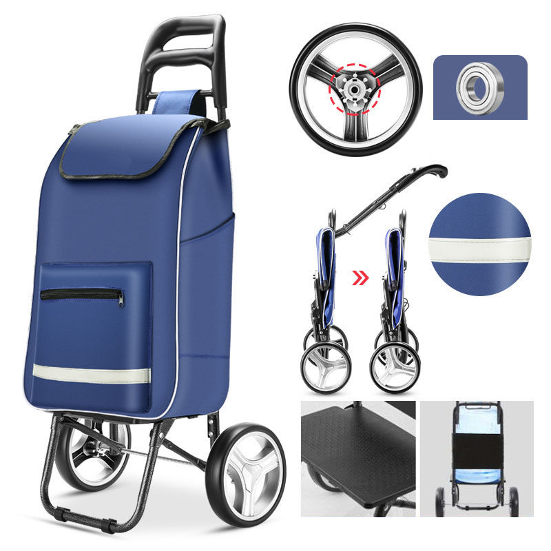Folding Shopping Cart Trolley Portable Luggage Trailer Grocery Cart with Bag Wear-resistant Rubber Wheels Bearing 100kg