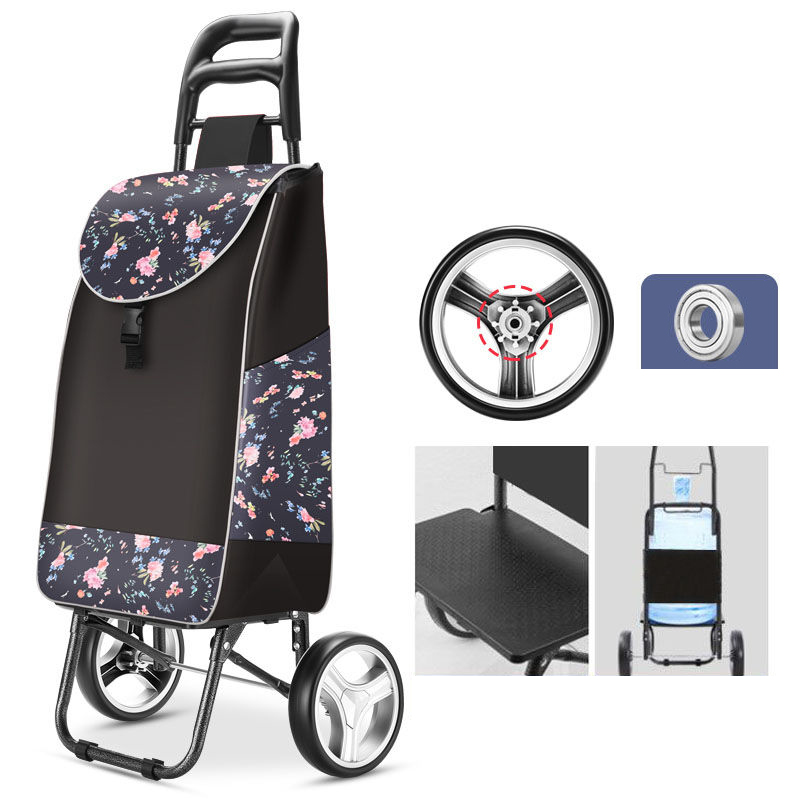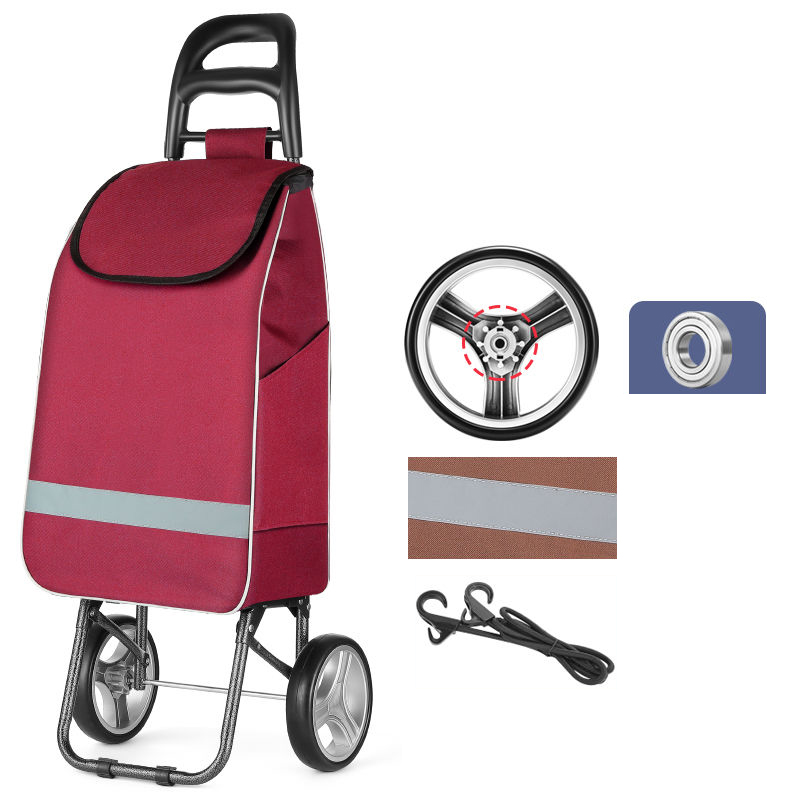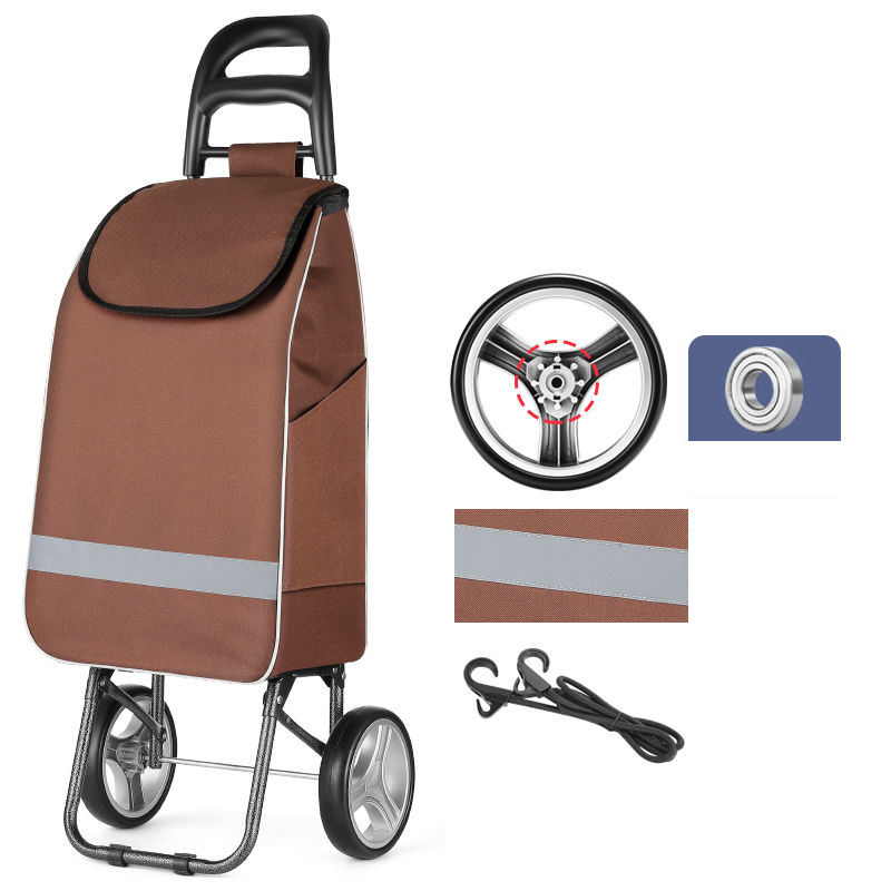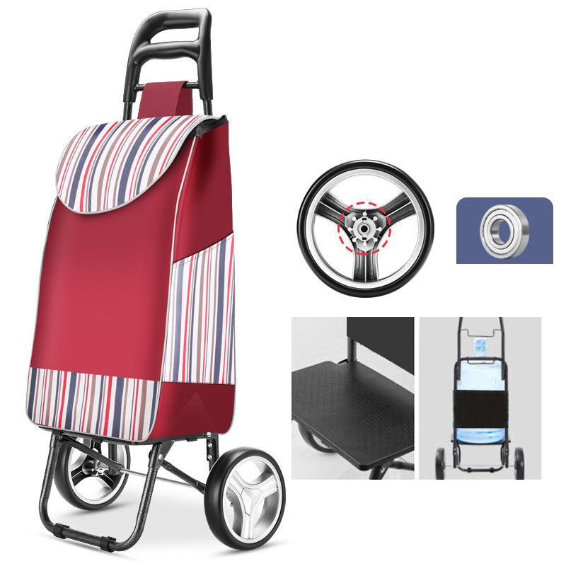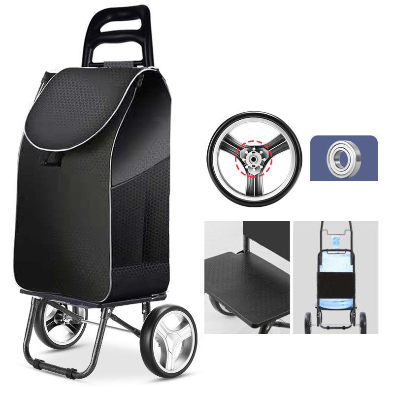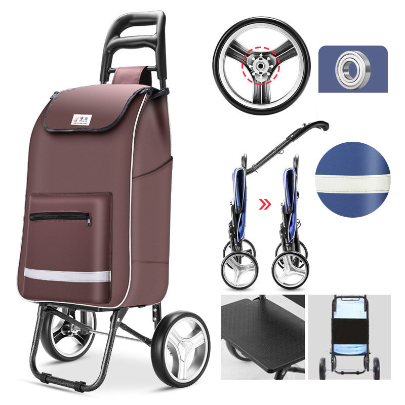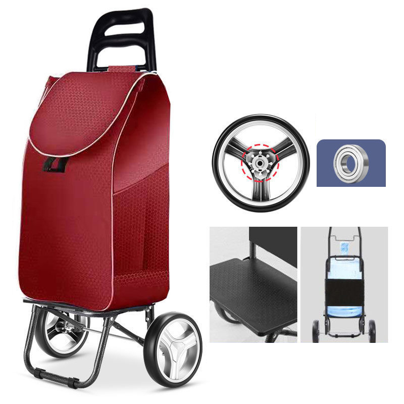 Folding Shopping Cart Trolley Portable Luggage Trailer Grocery Cart with Bag Wear-resistant Rubber Wheels Bearing 100kg
