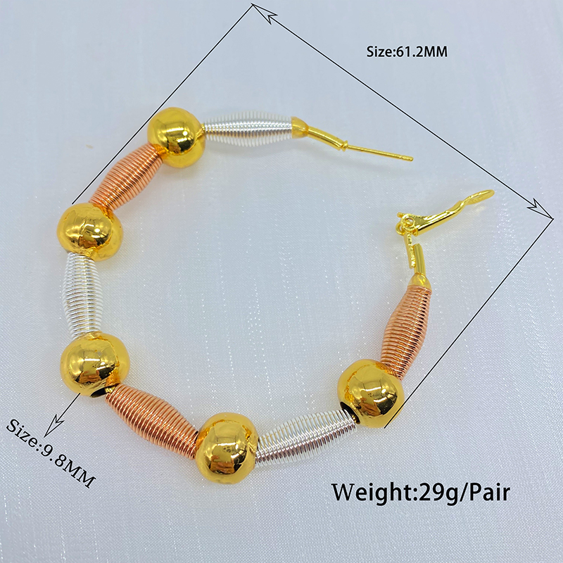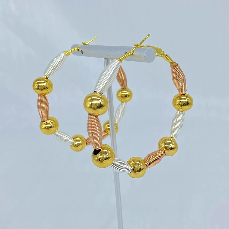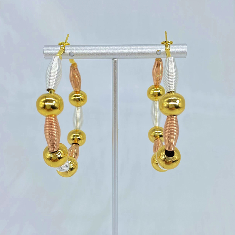 French Jewelry Gold Plated Tricolor Hoop Earrings For Women Anniversary Gift Daily Wear